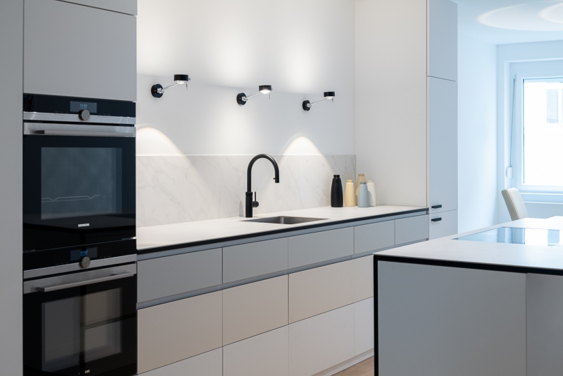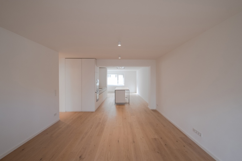 Diese Wohnung befindet sich mitten im vierten Wiener Gemeindebezirk. Wegen der dunklen, kleinen und ineinander verschachtelten Räumen hat sich Mobimenti für eine Komplettsanierung entschlossen. Dafür wurden vorerst alle Wände der 120 m2 Wohnung entfernt um so neue Räumlichkeiten zu schaffen. Die daraus entstandene beidseitige Belichtung durchflutet die Räume und lässt die Wohnung im ersten Obergeschoß in neuem Licht strahlen. Hochwertige, helle Materialien ermöglichen zusätzlich eine angenehme Atmosphäre.