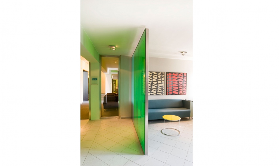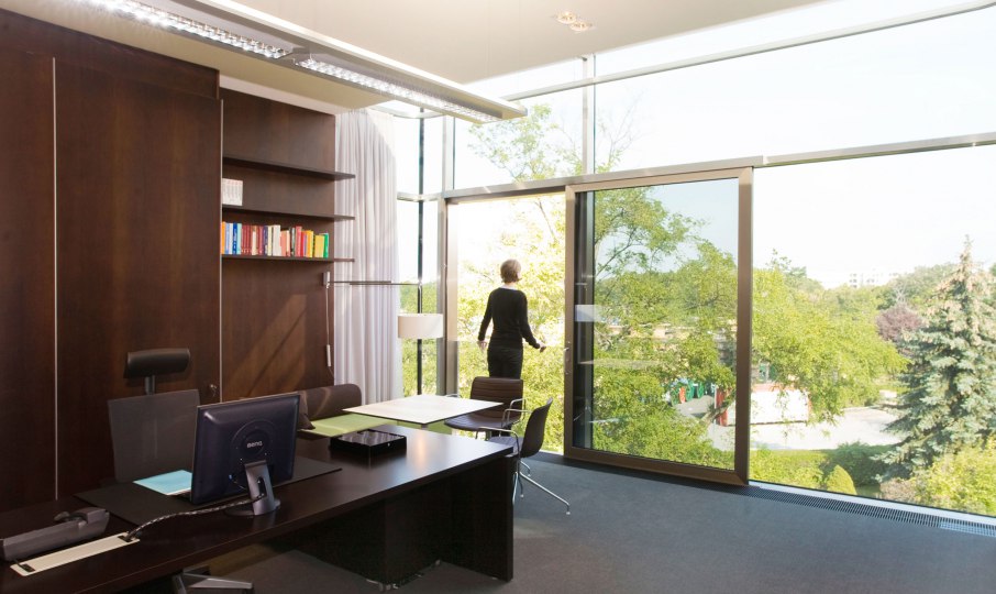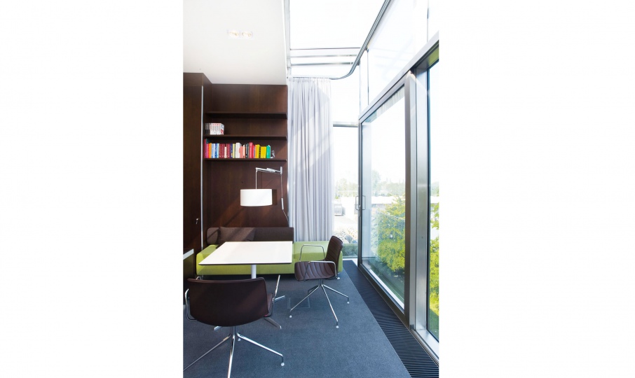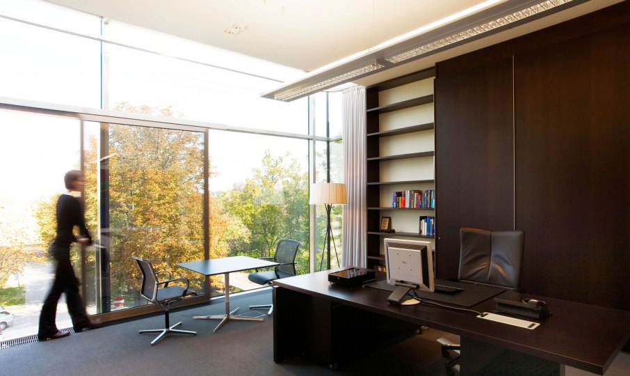 Bei diesem Projekt wurde die Chefetage der Schwechater Kabelwerke um einen Glasanbau aufgewertet. Die - structural glazing - Fassade wurde mit größtmöglichen Glasformaten und Schiebetüren, welche in eine hintere Ebene versetzt sind, ausgeführt . Die Konstruktion wurde in gebürstetem Niro Stahl ausgeführt. Die Struktur der Fassade wurde in den Räumen, wie in japanischen Häusern, aufgenommen und fortgeführt.