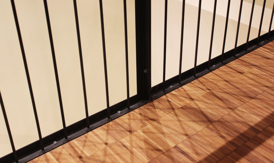 Der Holzboden wurde angemalt und lässt eine Parallele zu den typischen schwarzweiß Fliesen in amerikanischen Take Away Restaurants erkennen.