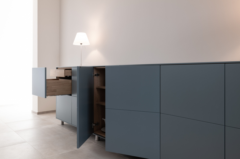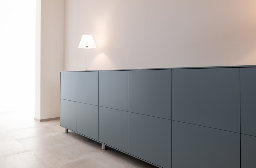 Der Teppich ist, genau so wie das Sideboard, eine Maßanfertigung von Mobimenti.