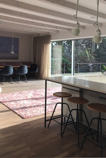 Hier wurden Fenster durch eine großzügige Glasfront ausgetauscht was den Innen- und Außenraum beinahe ineinander verschmelzen lässt.