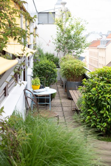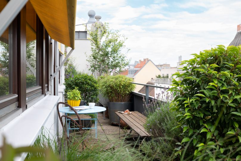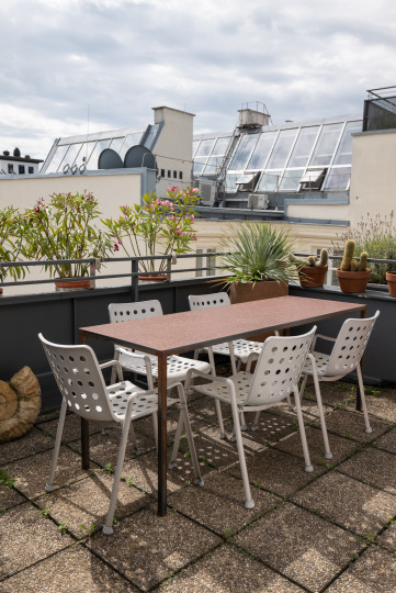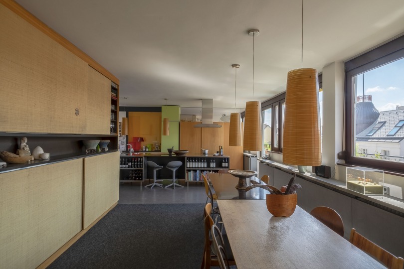 In einem Terrassengeschoß, hoch über den Dächern der umliegenden Wohnbauten, befindet sich dieses Einraumkonzept. Beim Eintreten begeistert es rasch durch den Fernblick über den schönen 19. Wiener Gemeindebezirk.